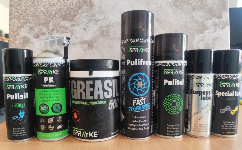 Kompletní sada profesionálních produktů Sprayke pro servisní dílny a cykloprodejny. Obsahuje vše potřebné pro efektivní čištění, mazání a ochranu komponentů při pravidelné údržbě kol.