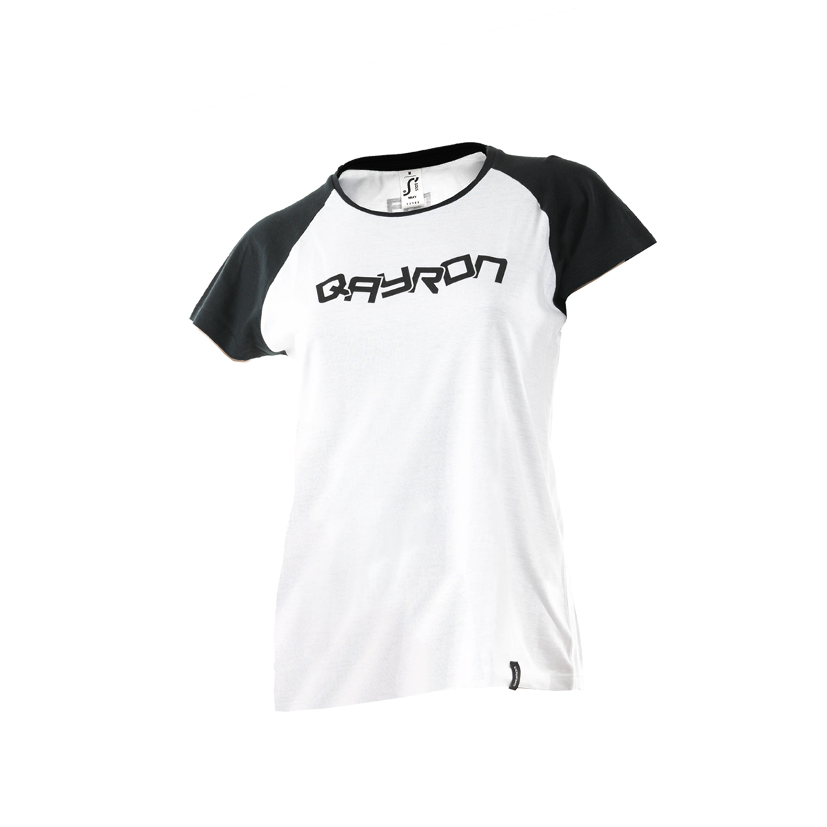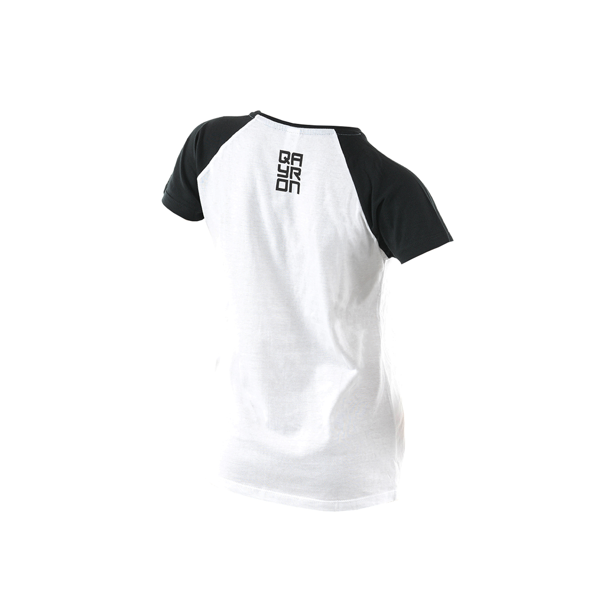 Dámské raglánové tričko s vypasovaným střihem, úzce lemovaným kulatým výstřihem s elastanem.